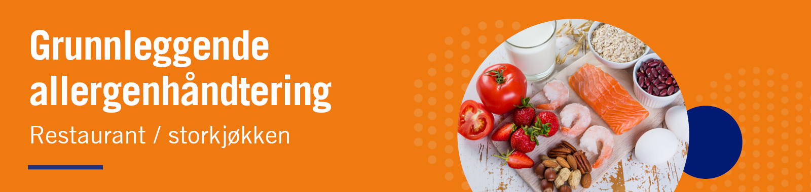 Matvareallergier har blitt en stor helserisiko i samfunnet. Selv om kun et fåtall av oss er allergiske, kan en allergisk reaksjon få store konsekvenser. Derfor er det avgjørende at alle som jobber i restaurant og storkjøkken har god kunnskap om hvordan allergener håndteres riktig. Dette kurset gir deg en grundig og praktisk innføring i hvordan du skal håndtere allergener i restaurant / storkjøkken.